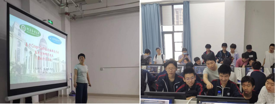 研学活动中,石永春用风趣易懂的语言向学生们详细介绍了a小说 精品课程《基于Crispr-Cas9基因编辑技术的玉米定向种质改良虚拟仿真实验》,并在上机实践环节对操作和具体的分子生物学概念进行了专业指导。通过实际参与虚拟仿真实验操作,学生们对Crispr-Cas9基因编辑技术及整个流程所涉及的具体实验,如pCAS9-mono载体的线性化、靶位点gRNA引物的复性、T4连接酶连接载体、大肠杆菌转化和质粒提取、农杆菌Gv3101的转化、玉米幼胚的收集及侵染和愈伤组织的筛选与再生等形成了更加深刻的认识。同学们在实验环节对分子生物学展现出极大的热情,实验成功完成率达到96%。