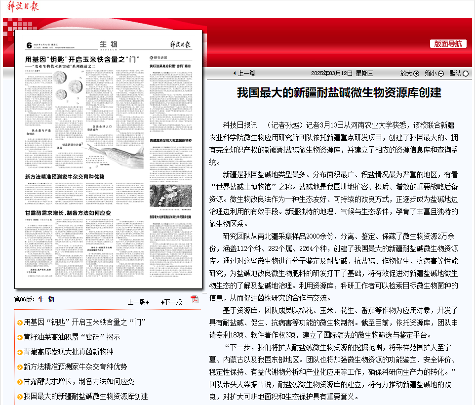 转载科技日报——我国最大的新疆耐盐碱微生物资源库创建